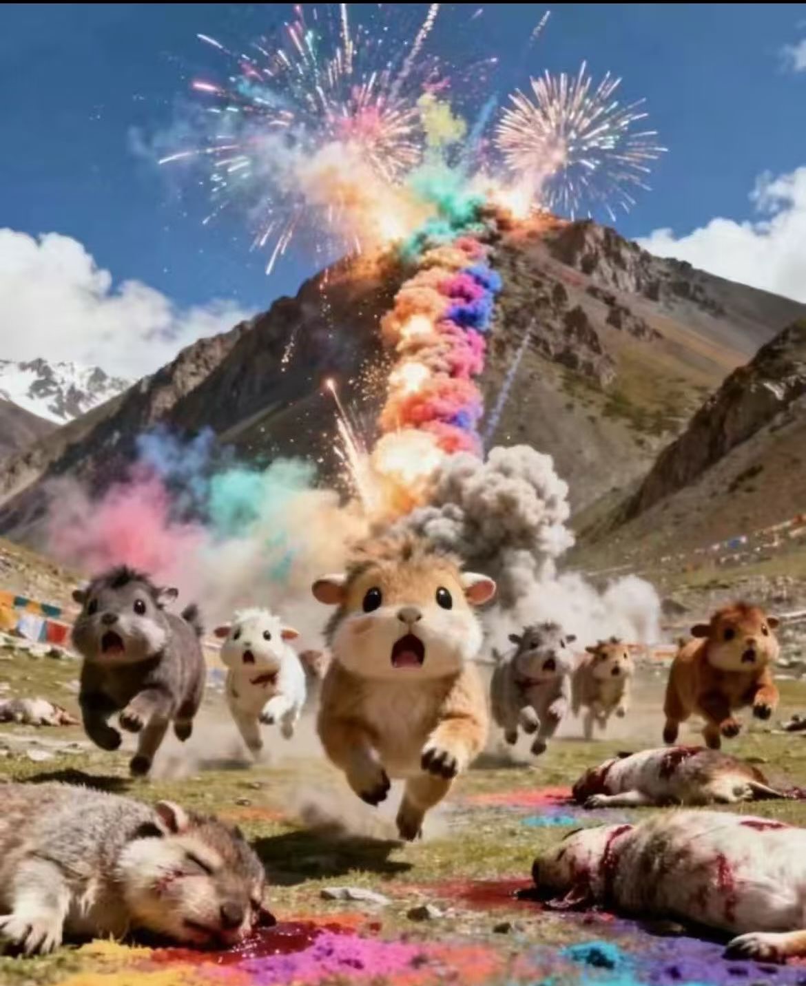 Tysiące świec dymnych i rac, które 19 września niemal godzinę odpalono na górskim grzebiecie, położonym na wysokość 4600 m n.p.m., miało symbolizować „wzlatującego smoka”. Transmitowany w sieci pokaz wywołał oburzenie Tybetańczyków i wielu chińskich internautów, oskarżających koncern i „artystę” o bezmyślność, dewastowanie środowiska naturalnego i brak wrażliwości kulturowej.