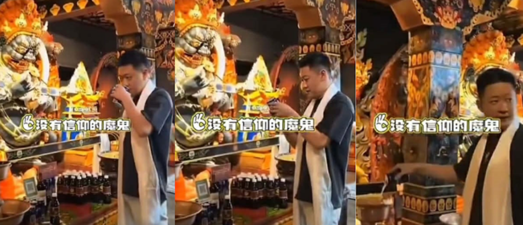 Reakcja na film opublikowany w internecie przez chińskiego turystę, który popisuje się, kradnąc ofiarę z klasztornego ołtarza i wylewając resztki do maślanej lampki.
